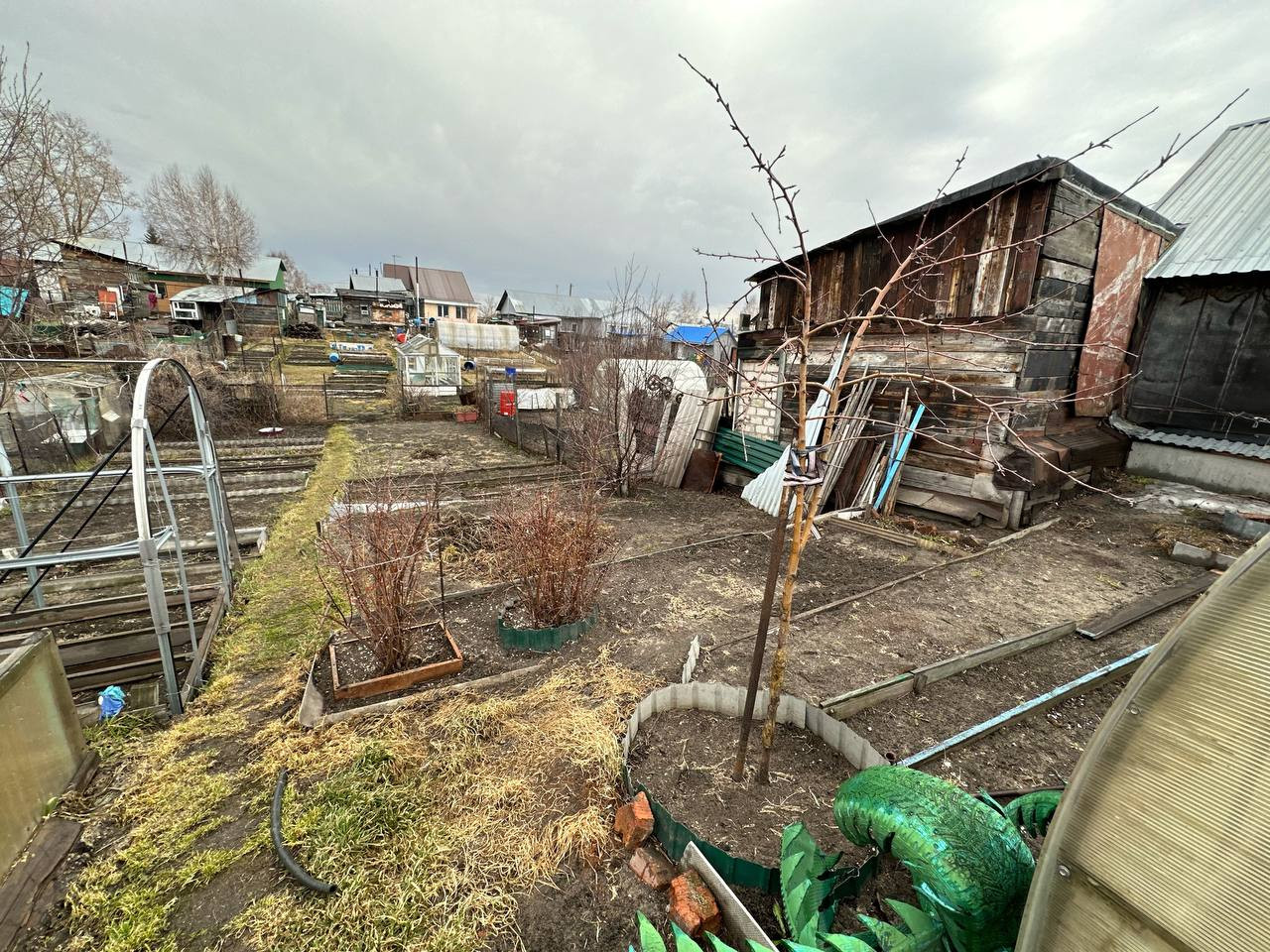 На участке так же расположены: гараж, 2 сарая(кирпичный и деревянный), летние душ и туалет, теплица, огород.