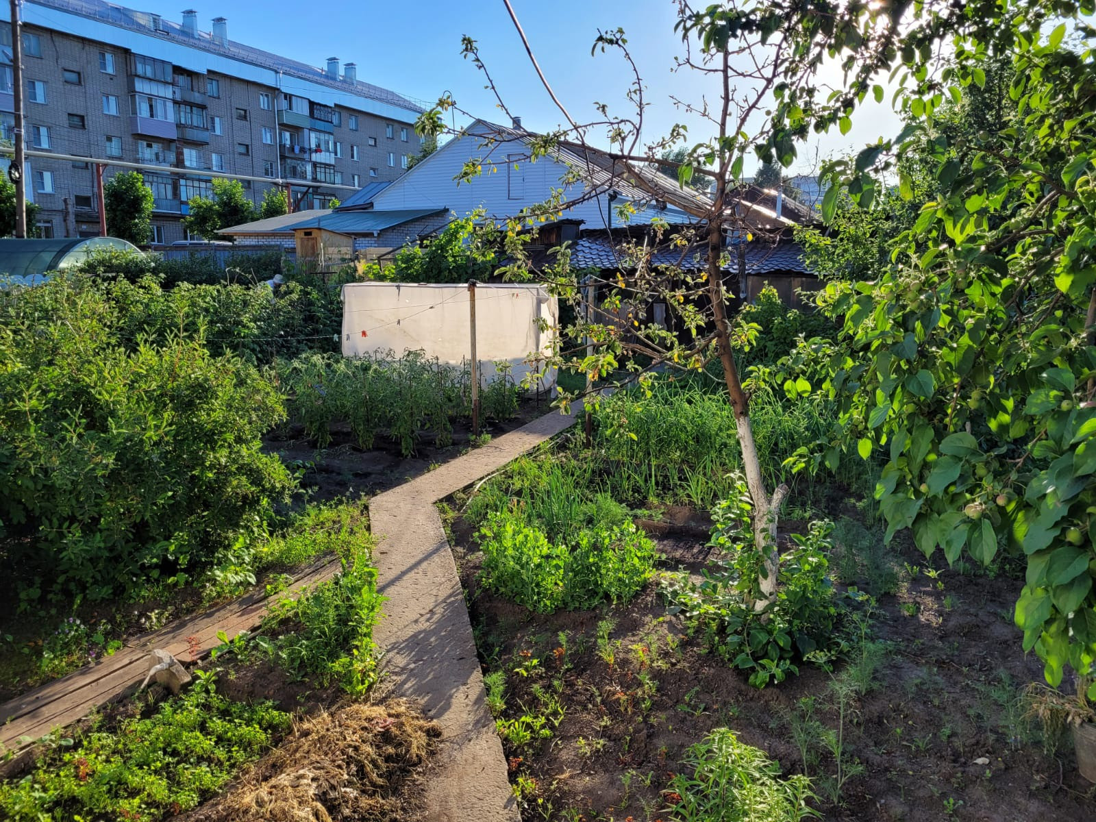 Прекрасный огород со всеми необходимыми посадками-яблони, виноград, клубника, крыжовник, жимолость, вишня, малина и тд.
