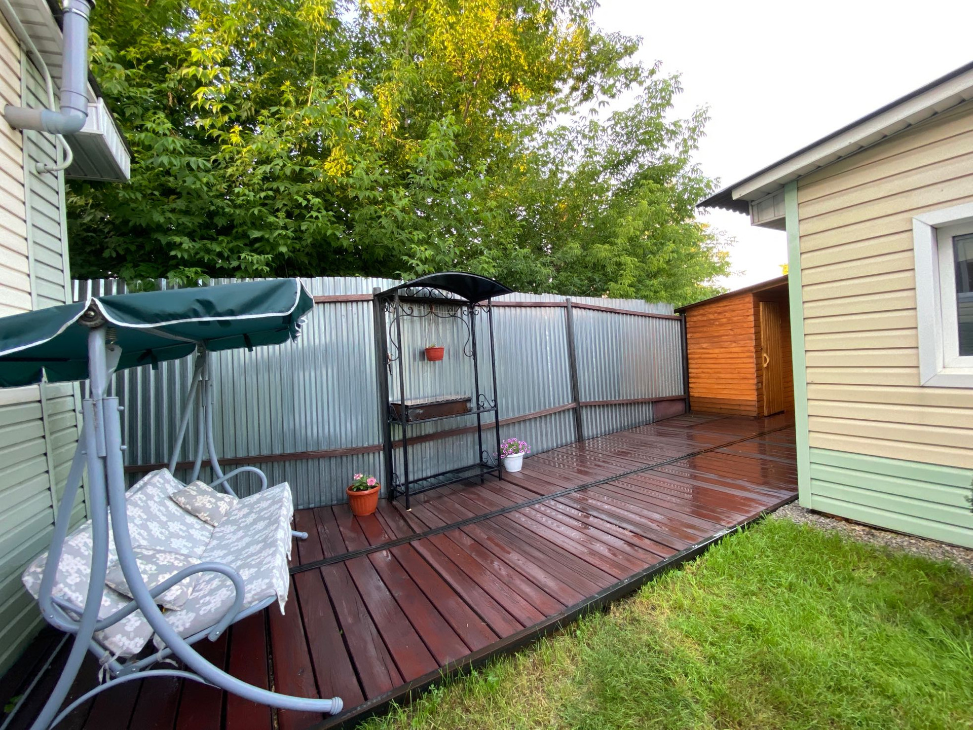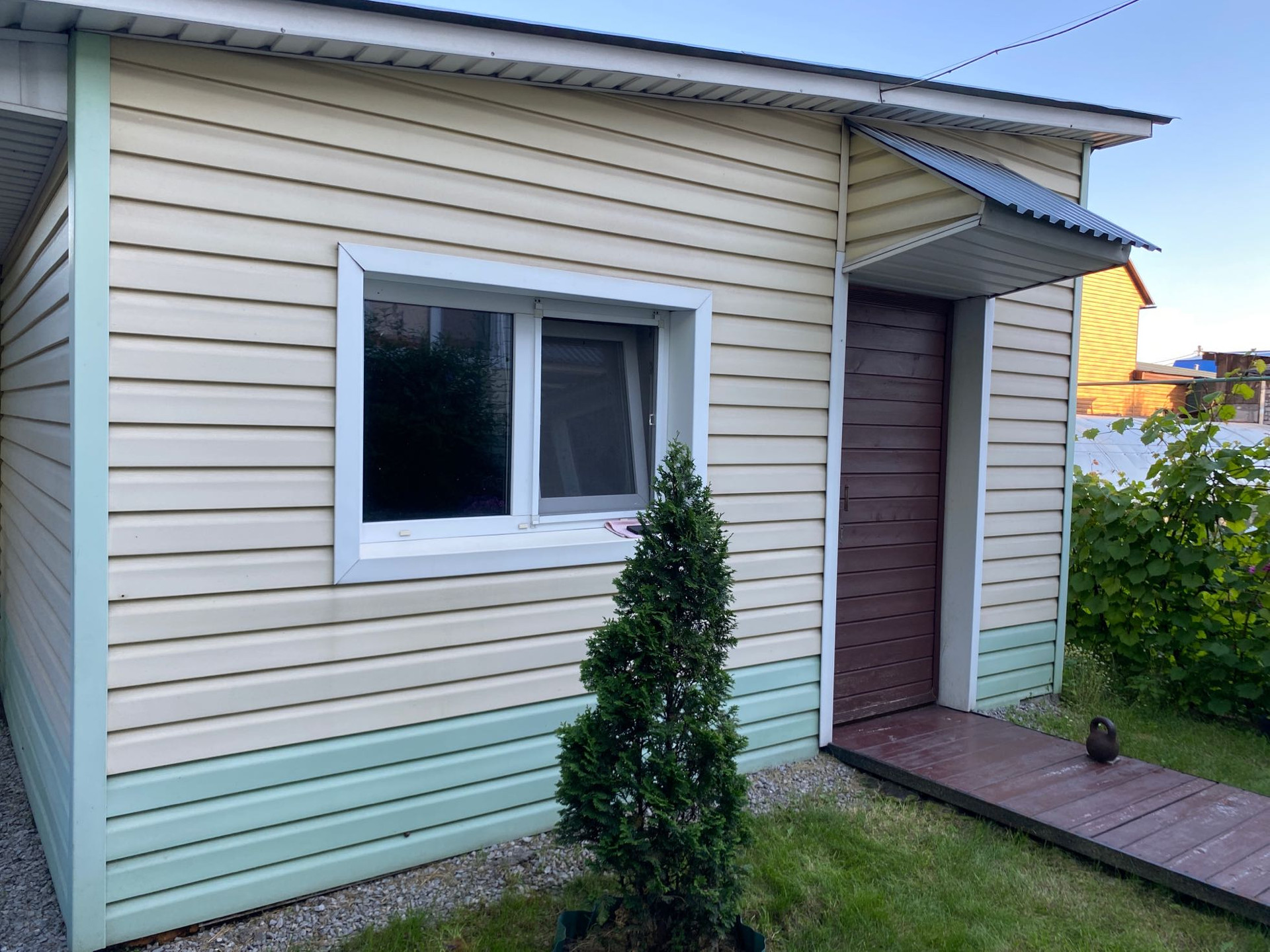 Есть возможность отделки второго этажа как мансардного. На заднем дворе полноценная баня, мангальная зона, хозблок и уличный туалет. Выход на задний двор и с дома и с гаража!