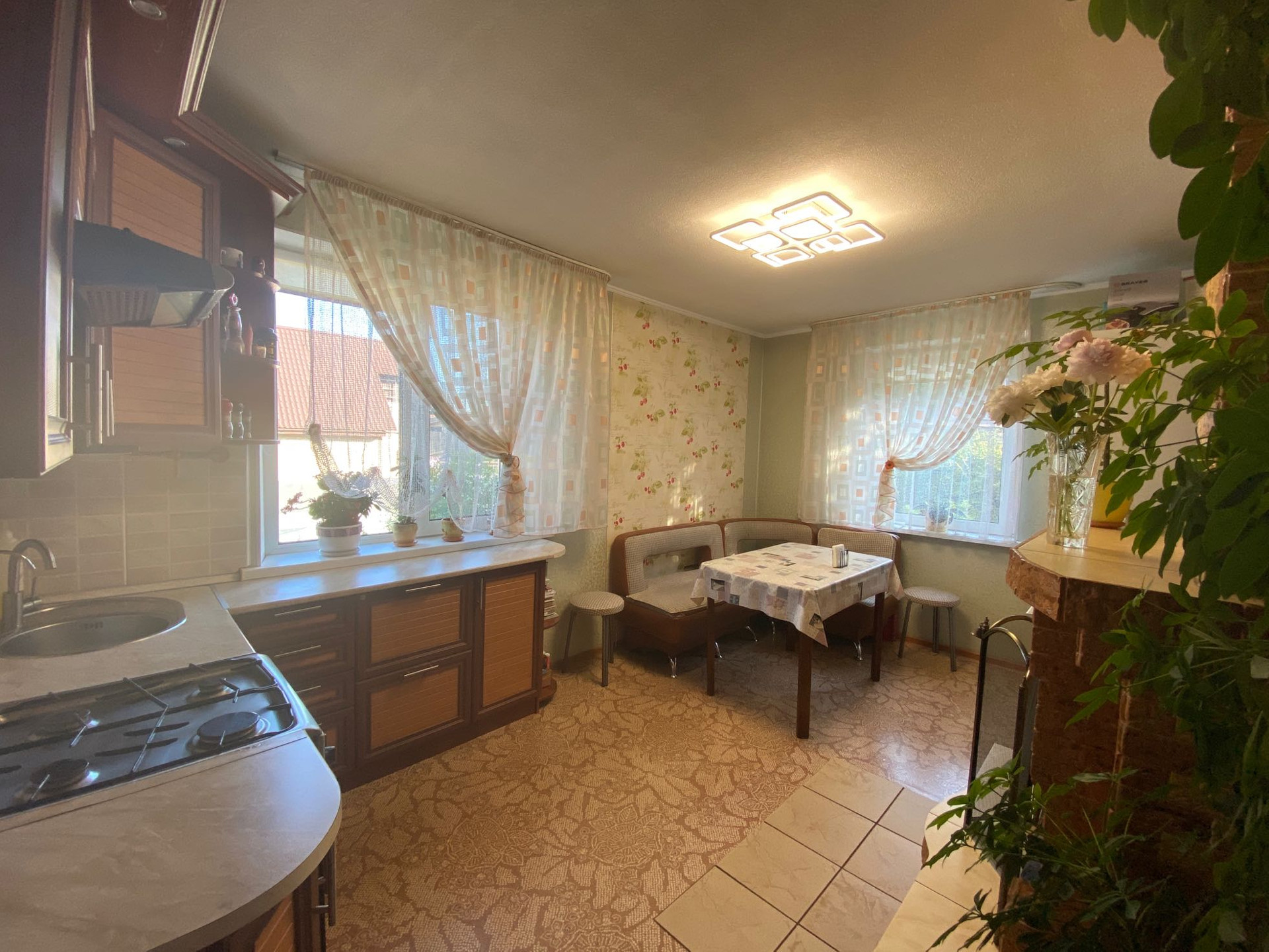 Развивающийся paйoн с отличной трaнcпоpтной paзвязкой. 5 минут до центра. Рядом расположена вся инфраструктура, необходимая для комфортного проживания. В шаговой доступности детские сады, школы, поликлиники, магазины и торговые центры.  Центральная вода, газ! Два гаража, один теплый с отделкой и смотровой ямой, второй поменьше.  3 полноценные комнаты + кухня гостиная с настоящим, функционирующим камином. В доме оставляем всю мебель и бытовую технику + садовый инвентарь для сада.