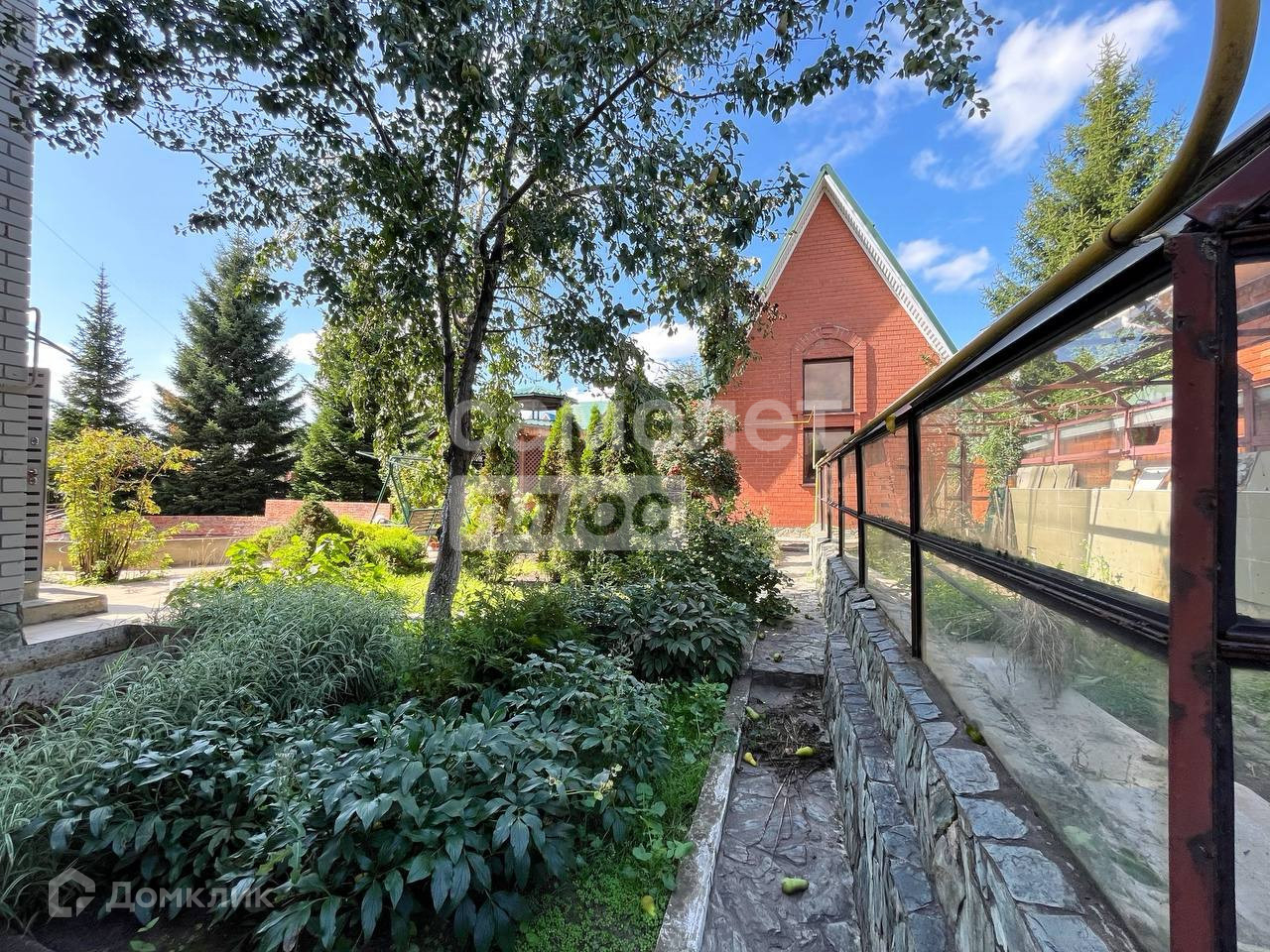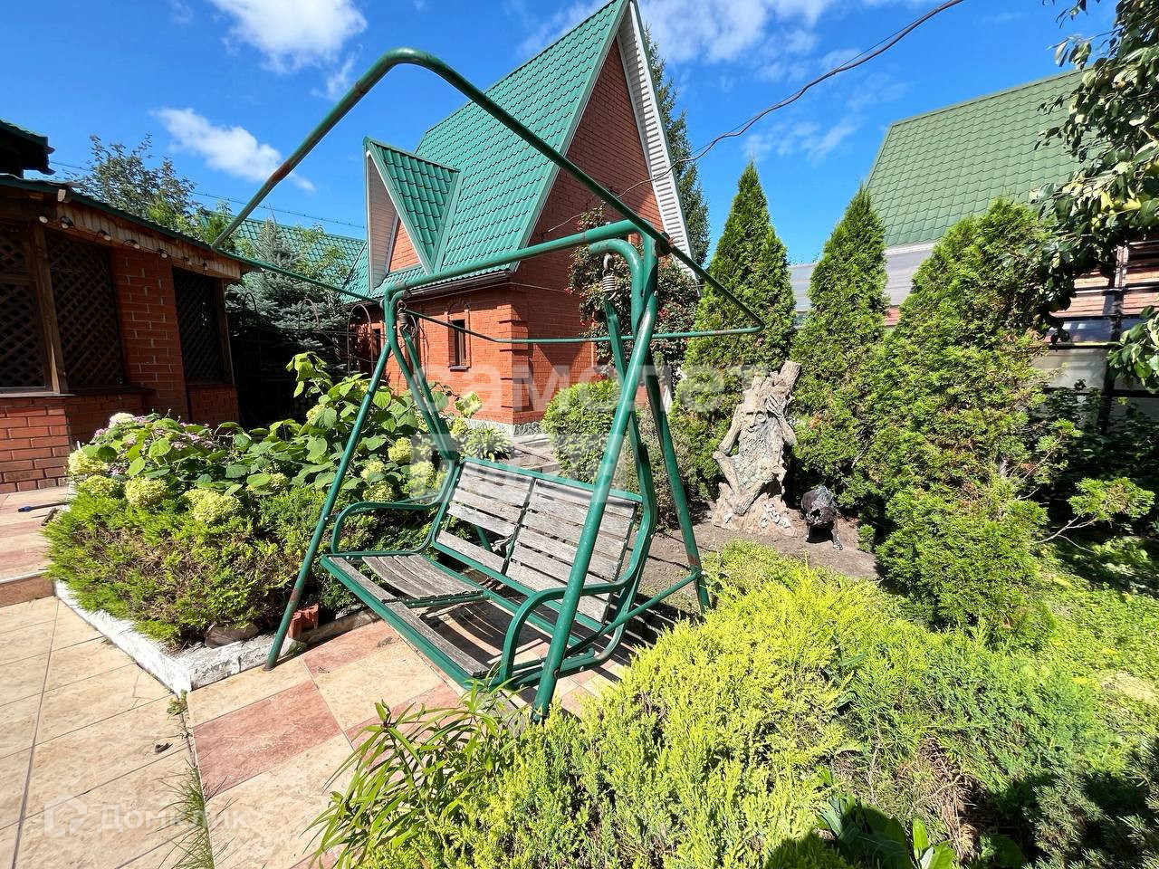 На территории участка располагается баня, беседка с печью кирпичной кладки, стол с костровищем по центру,  гараж, теплица бассейн и плодоносящий сад (яблони, груши, малина).