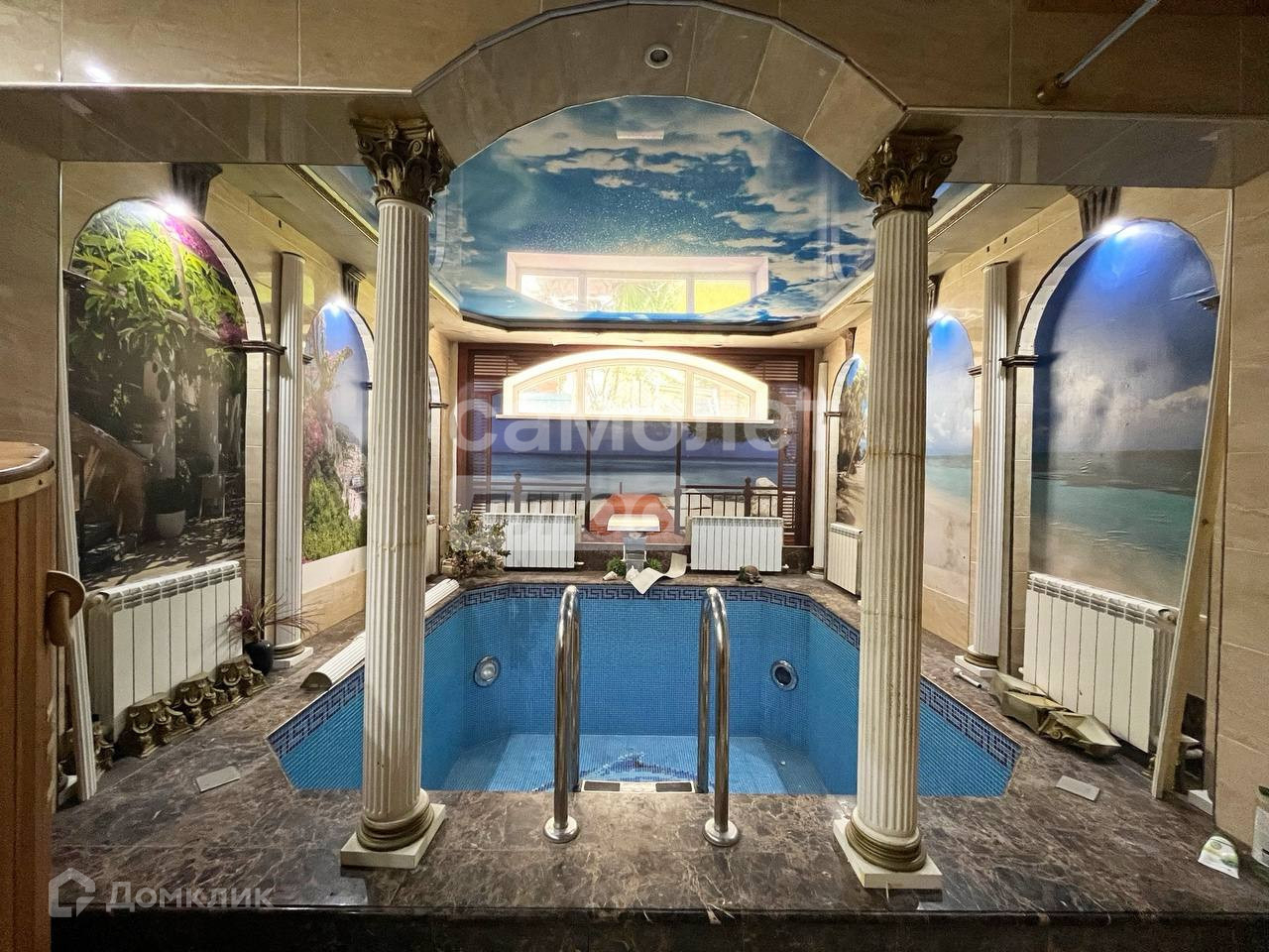 В доме цокольном этаже расположенная сауна с бассейном, комната отдыха, санузел.