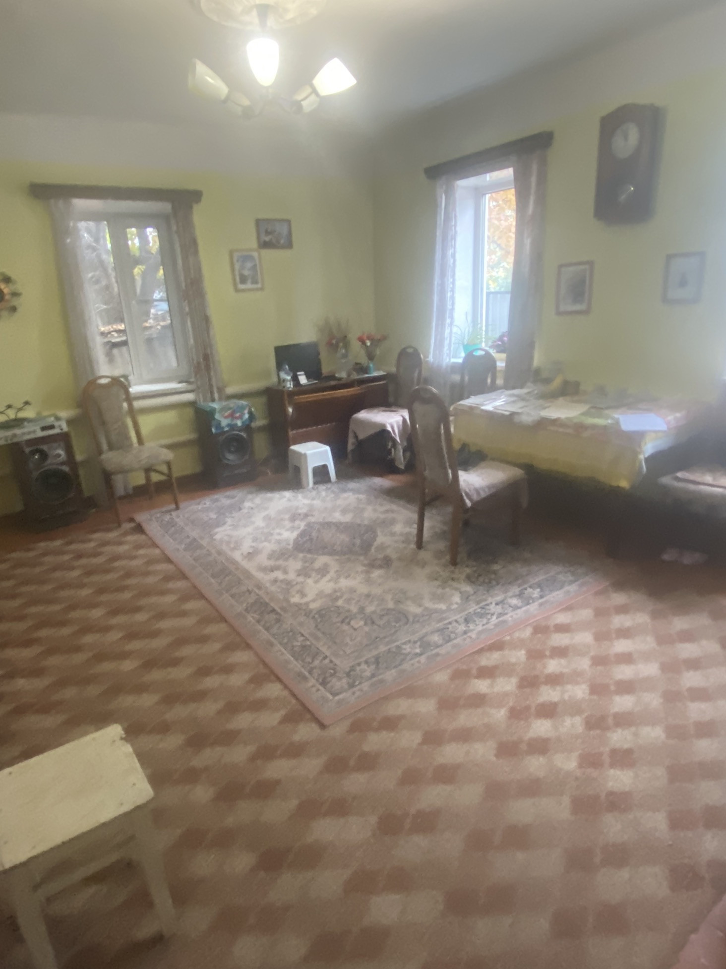 Кирпичный дом, ширина стен ~60 см. Окна все пластиковые, канализация и водопровод центральные. Санузел в доме. Планировка включает три небольших спальни, зал, кухню, небольшие сени. Есть второй выход - в огород. Дом требует ремонта в соответствии с современным вкусом. На текущий момент проживает бабушка. Благодаря материалу стен очень тепло. Высота потолка в доме - 3.15 метра! И также - возможно достраивать второй этаж.