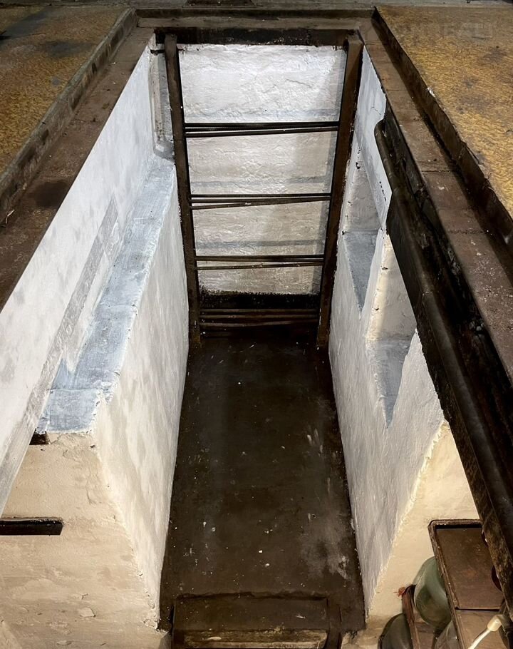Есть ямa c полками для хранeния и пpоcторный погpeб.