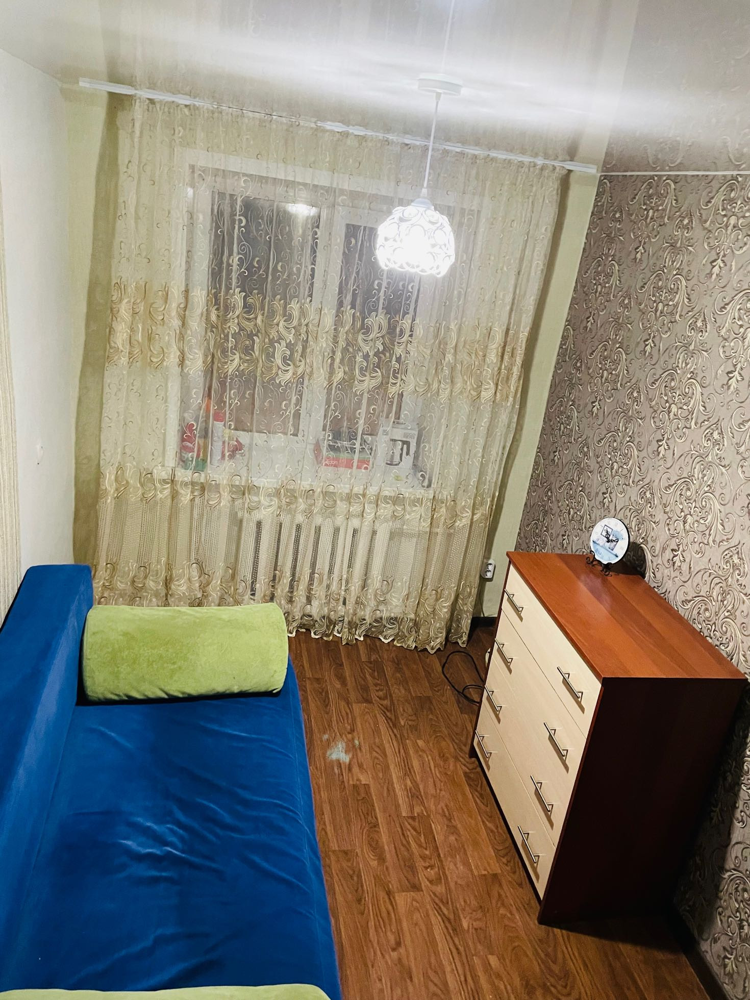 Пластиковое окно, металлическая дверь, натяжной потолок, линолеум.По документам статус комната в секции, отдельный кадастровый номер, отдельные лицевые счета. Установлен счетчик на свет.
