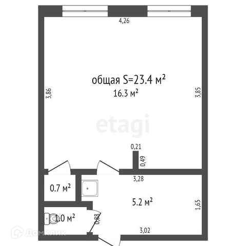 Общая площадь 23.4 м2