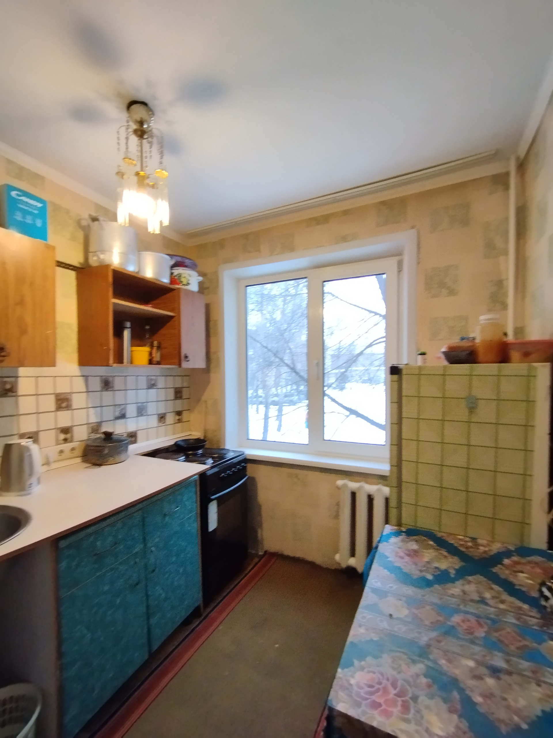 окна пластик,в коридоре и кухне линолеум