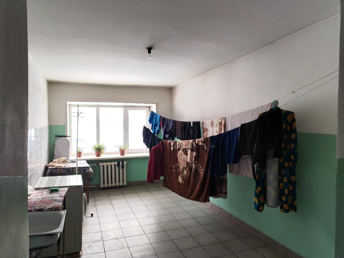 - Просторная с большим окном общая кухня;