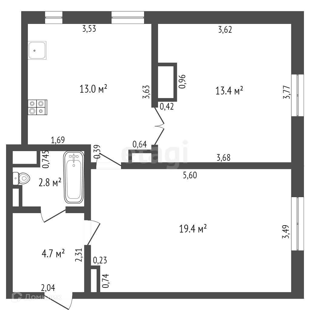 Общая площадь 50.3 м2