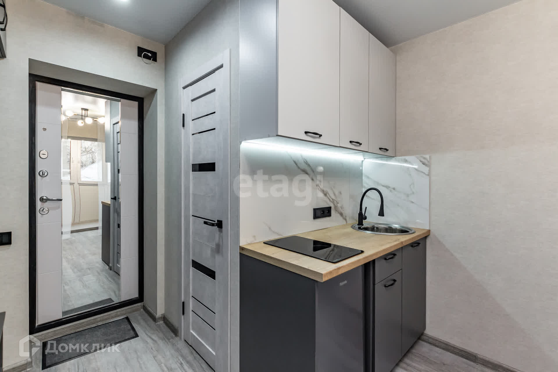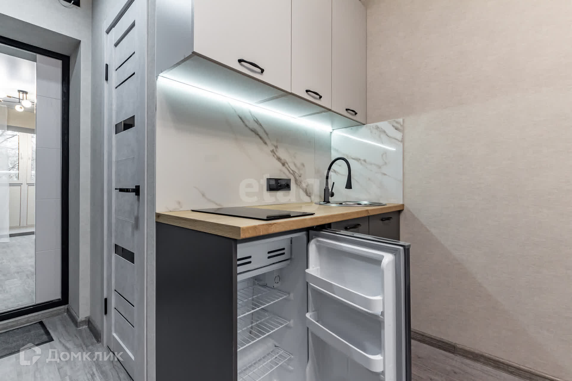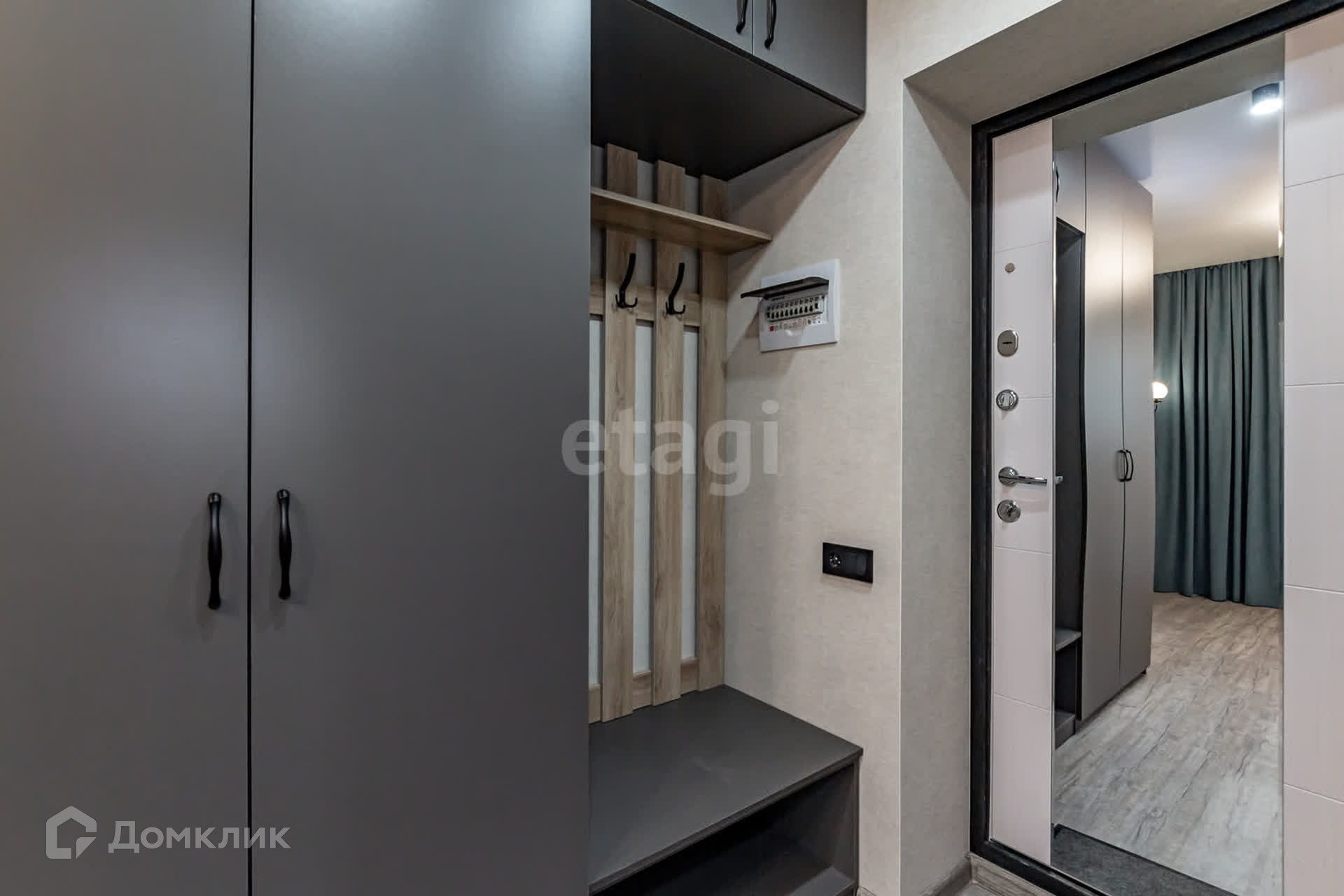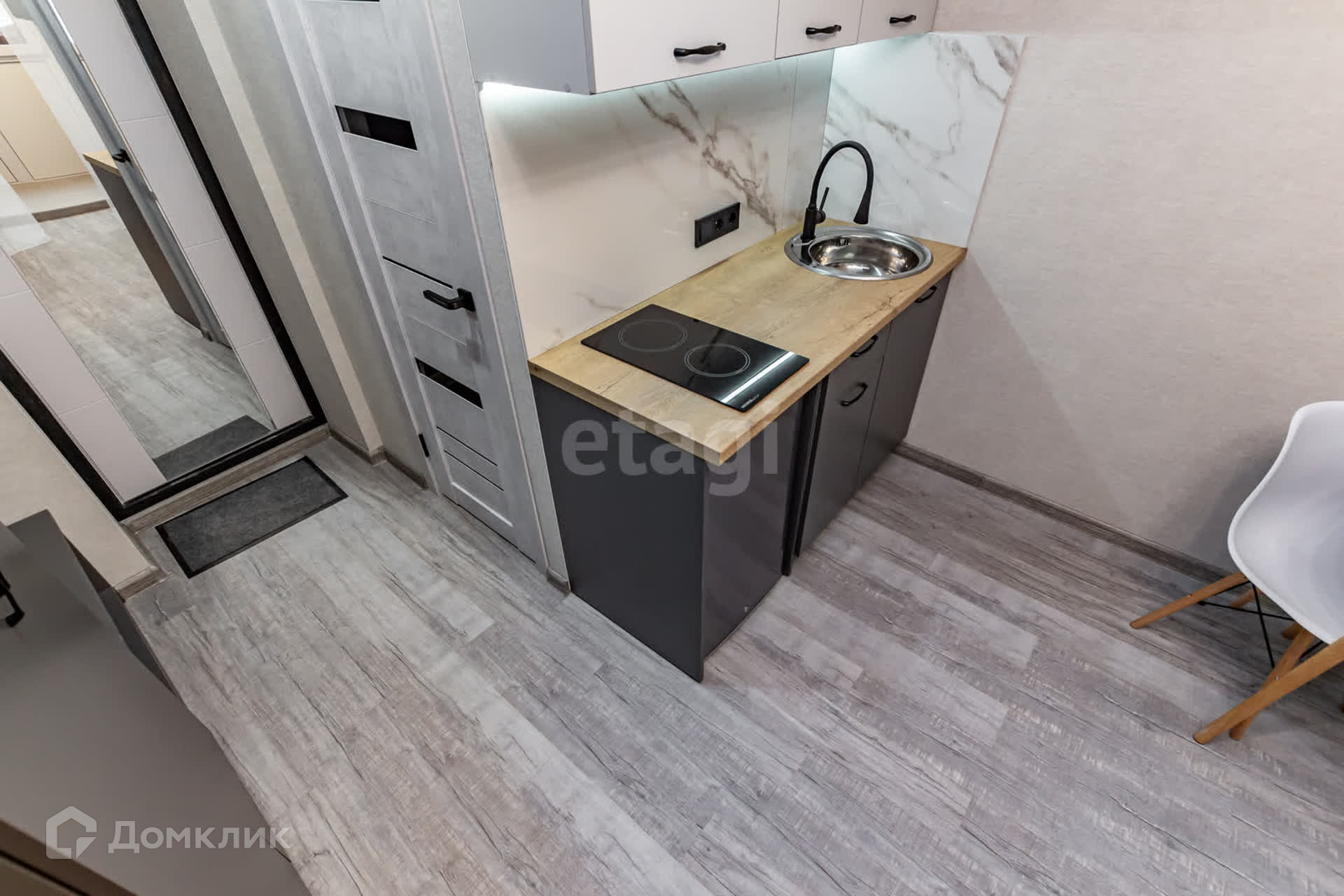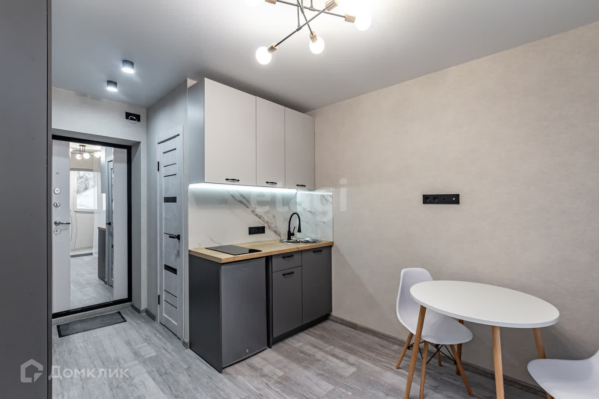 Это комната с удобным расположением на втором этаже. Внутри вас ждет современный ремонт и функциональное оформление. Кухонная зона оборудована всем необходимым: холодильником, стиральной машиной и обеденным круглым столом. В прихожей есть шкафная группа для удобного хранения вещей.