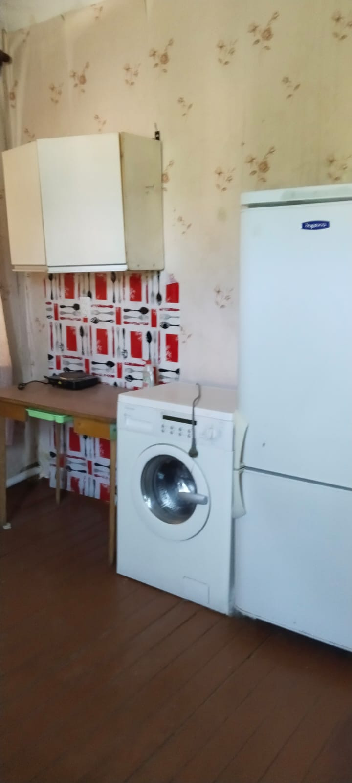 В комнате неглубокий погреб (около 1 м), проведена вода и канализация для стиральной машины.