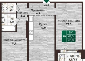 Продаю 2-комнатную квартиру, 60 м2, улица Малахова, 134Ак2