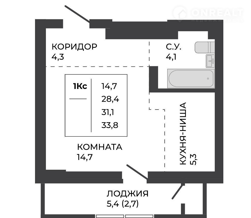 Общая площадь 31.1 м2