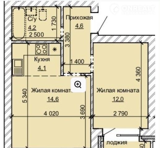 Площадь кухни 4.1 м2