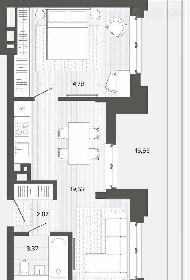 Общая площадь 56.9 м2