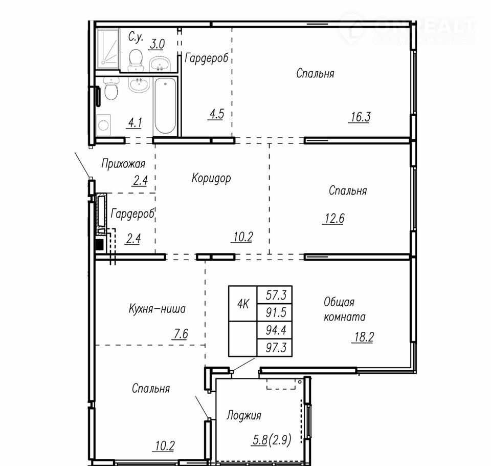 Общая площадь 94.4 м2
