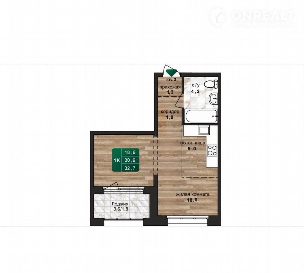 Балкон, лоджия 1 лоджия