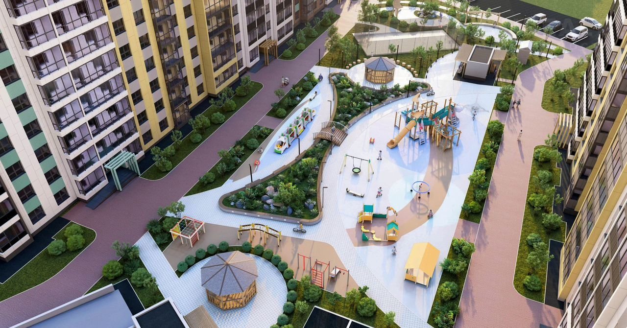 Придомовая территория комплекса предлагает множество возможностей для отдыха и активного досуга. Здесь найдутся уютные уголки для спокойного времяпрепровождения, а также спортивные площадки и игровые зоны для детей. Это идеальное место, где взрослые могут насладиться природой, а маленькие жильцы — активно проводить время на свежем воздухе.