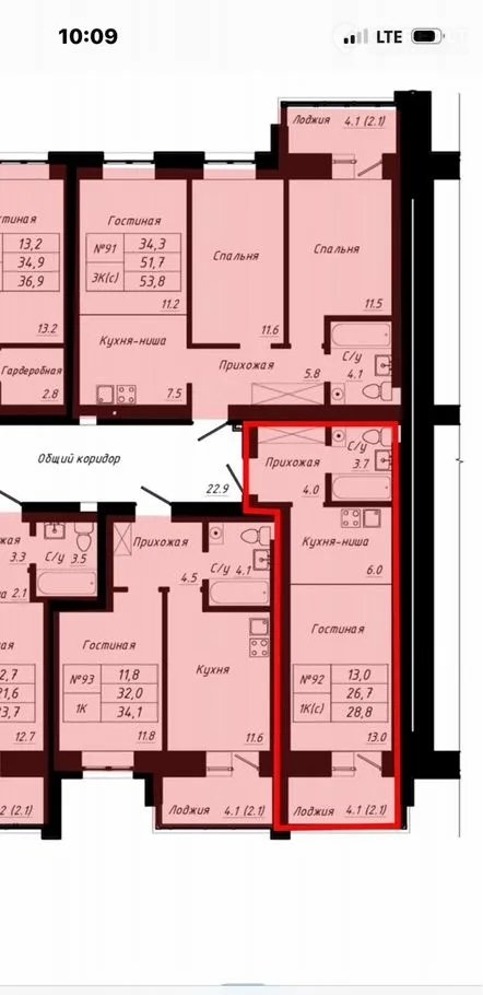 Общая площадь 28.8 м2