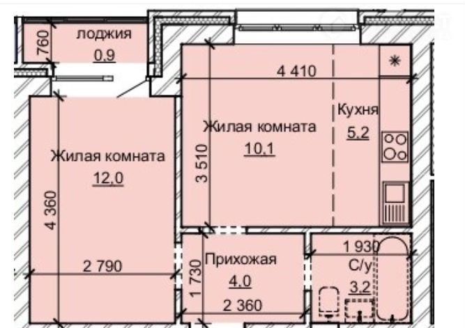 Площадь кухни 5.2 м2