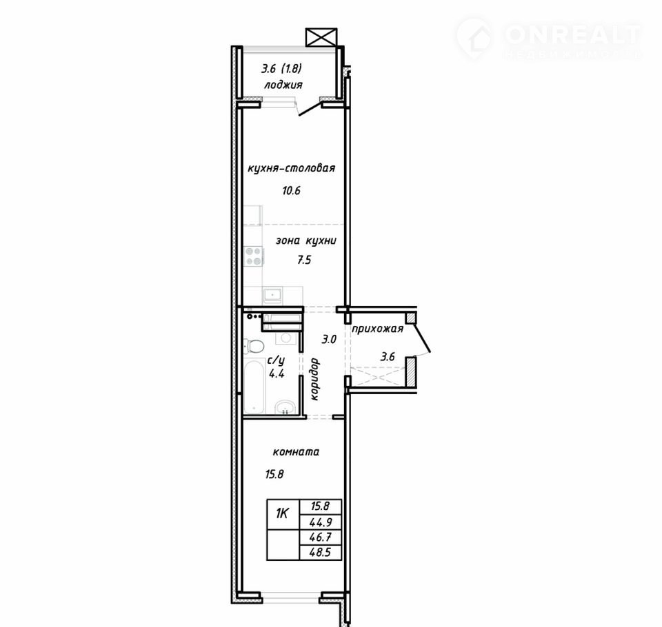 Общая площадь 46.7 м2