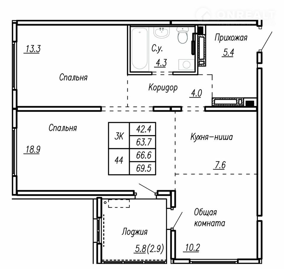 Общая площадь 66.6 м2