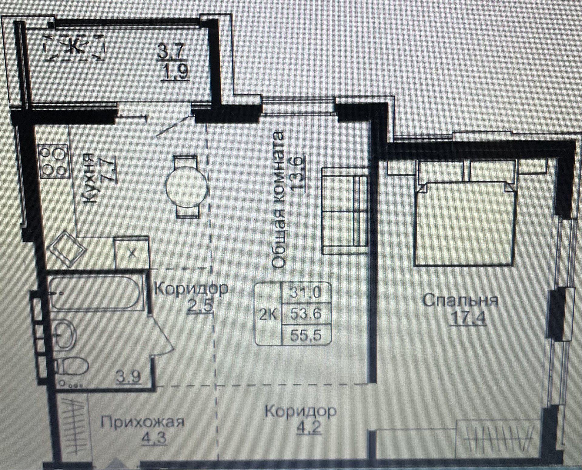Общая площадь 56 м2