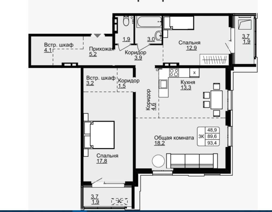 Общая площадь 79.4 м2
