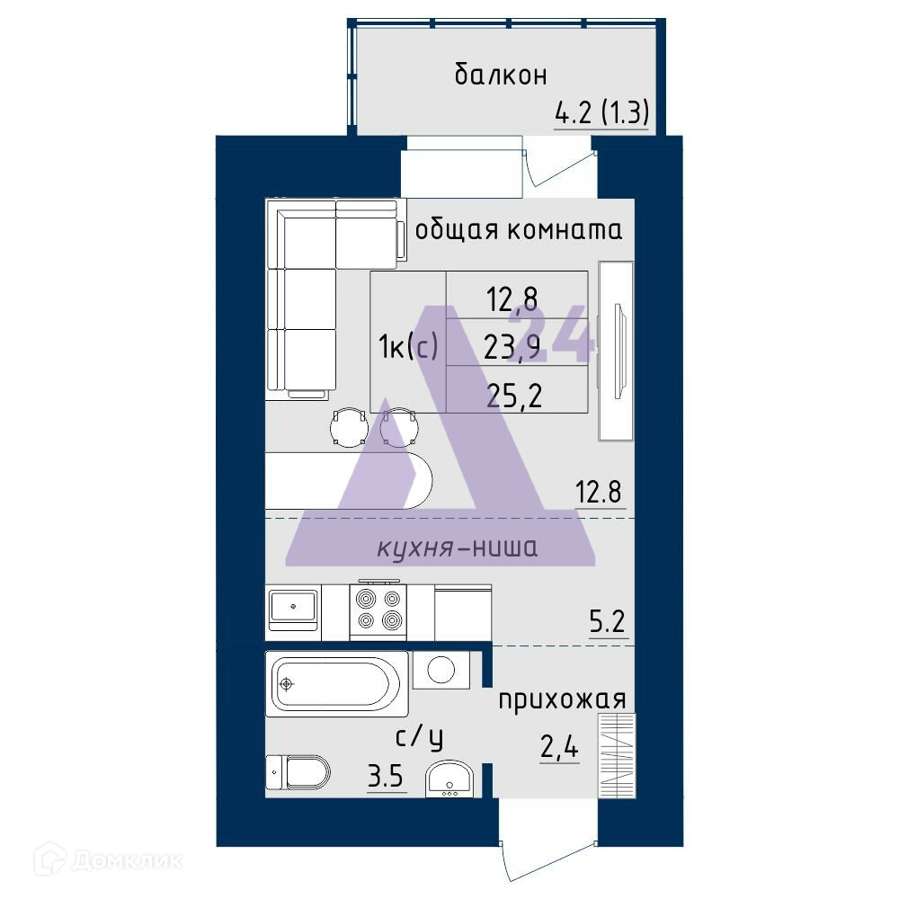 Общая площадь 25 м2