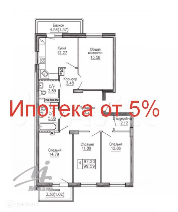 Жилая площадь 56 м2