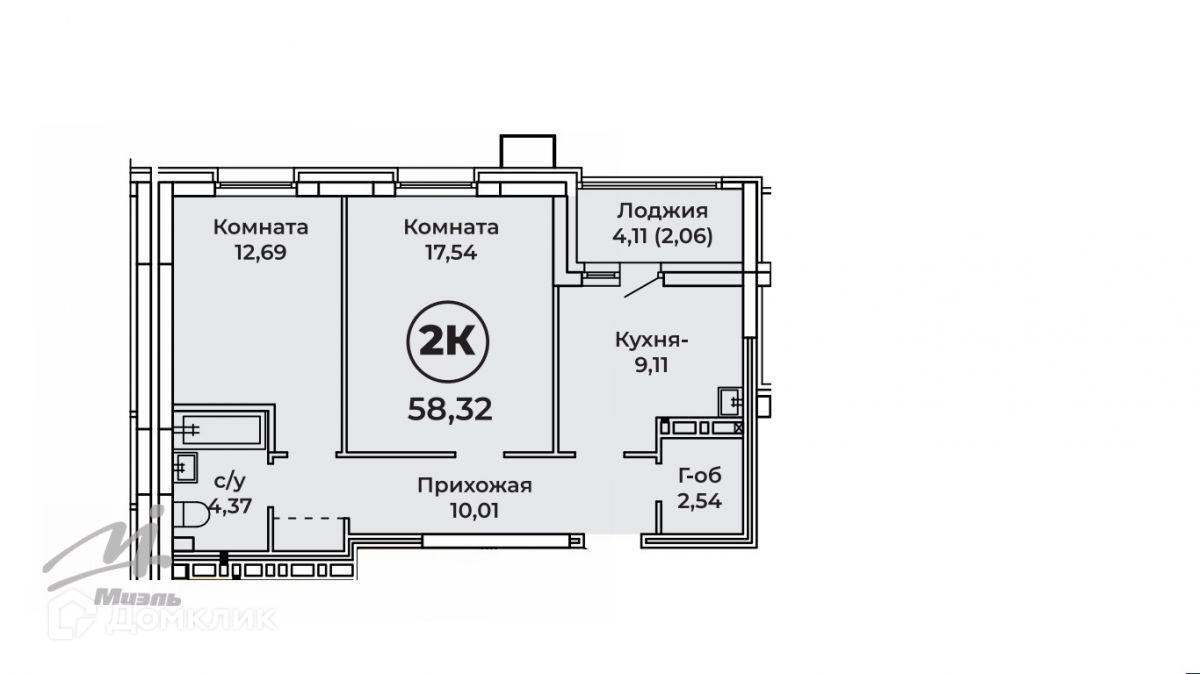 Общая площадь 58.32 м2