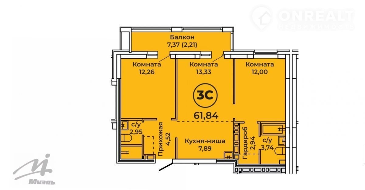 Общая площадь 61.8 м2