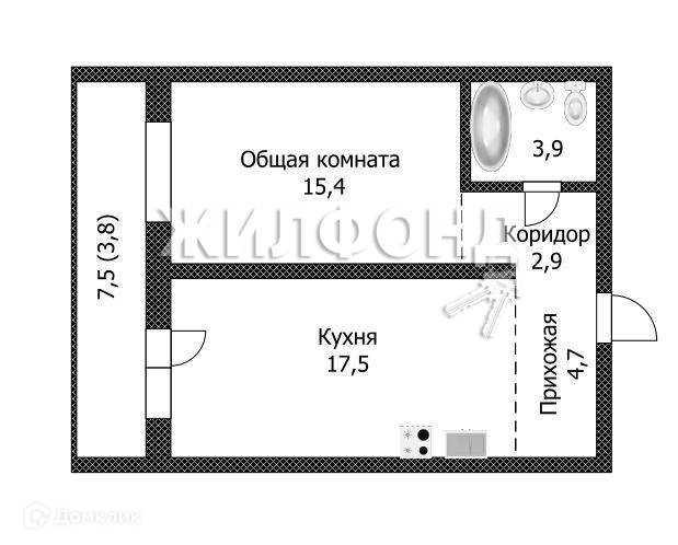 Жилая площадь 15.4 м2