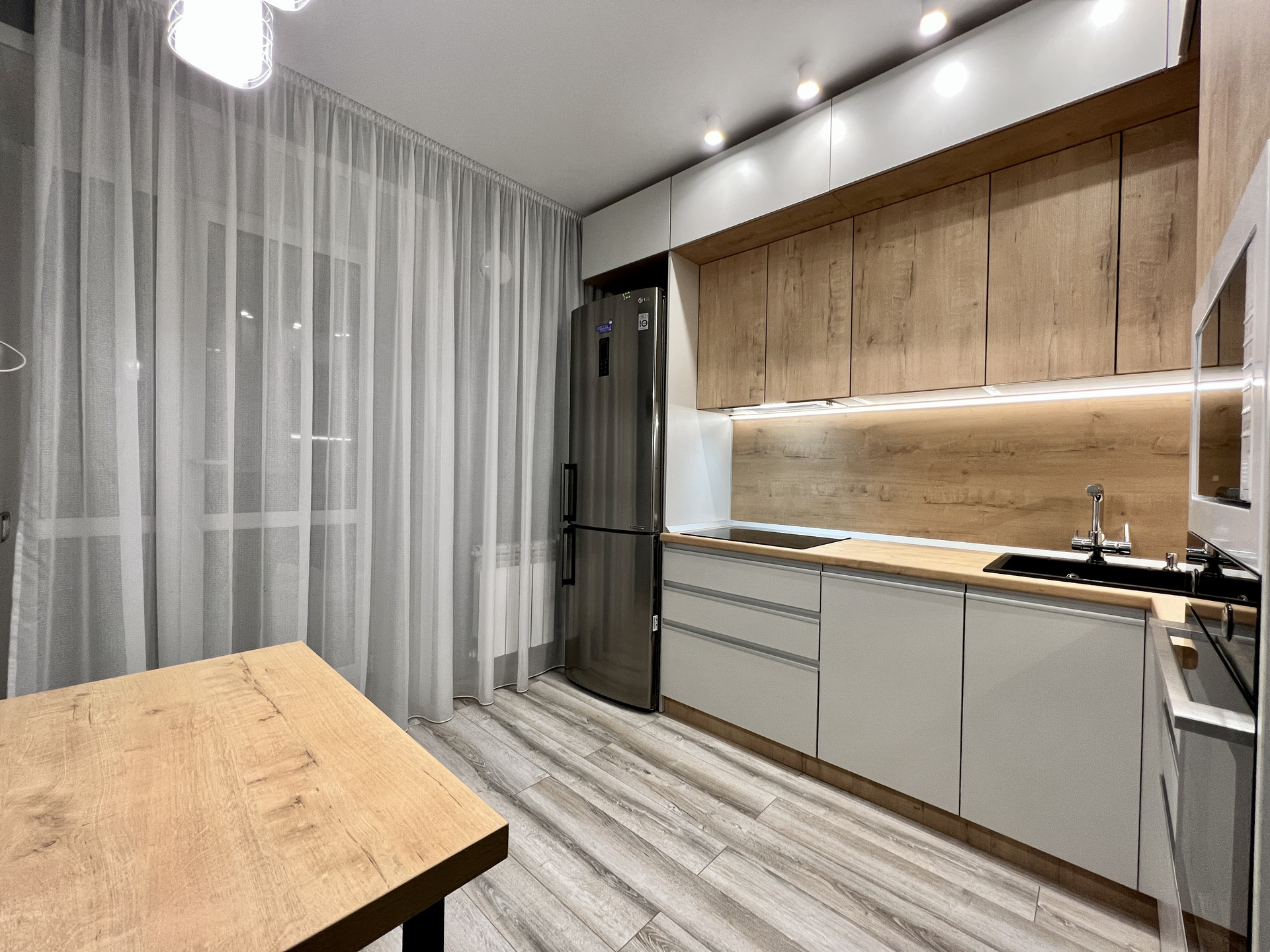 В квартире остается новый кухонный гарнитур.