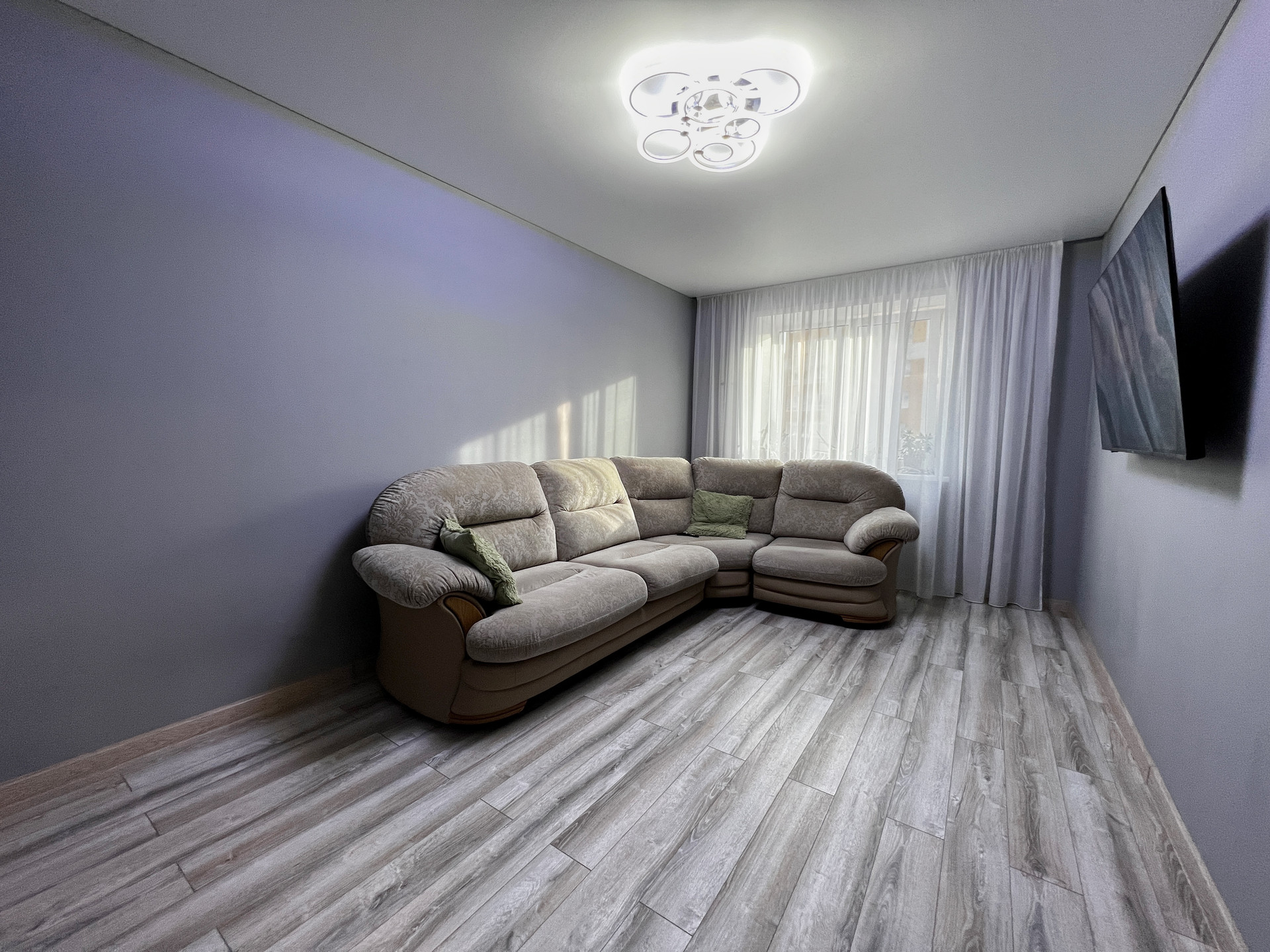 Все комнаты изолированы, лоджия из кухни, санузел совмещённый. Просторная прихожая. Окна выходят в тихий двор, парковка за шлагбаумом. Сделан современный ремонт. На полу ламинат, под стяжкой шумоизоляция. Стены идеально ровные, покрашены. Потолки натяжные, в санузле кафель. Качественные межкомнатные двери.