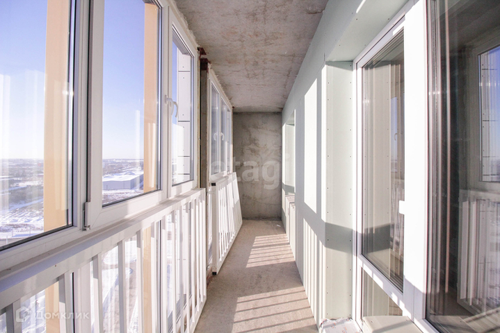 Большая лоджия на две комнаты, застеклена. Квартира расположена на 18 этаже 22 этажной башни, вид из окон открывается на Павловский тракт.