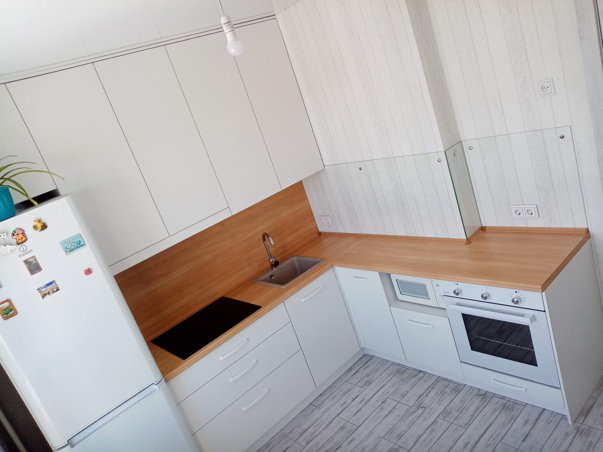 При продаже остаётся весь гарнитур со встроенной техникой, освещение.