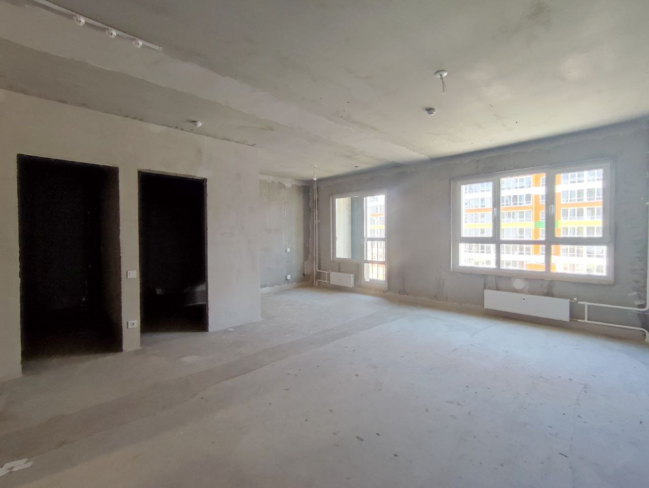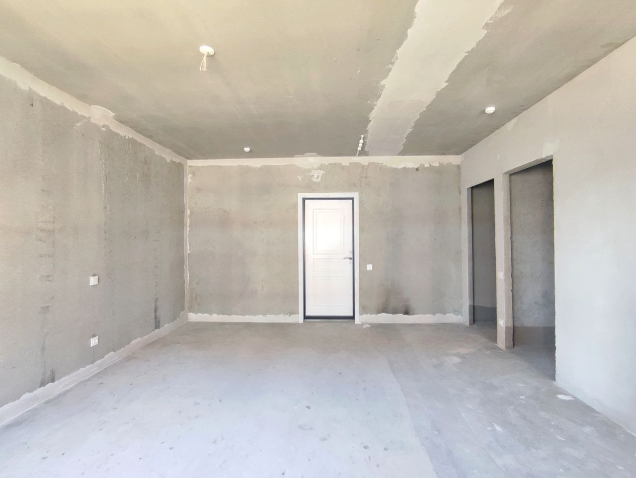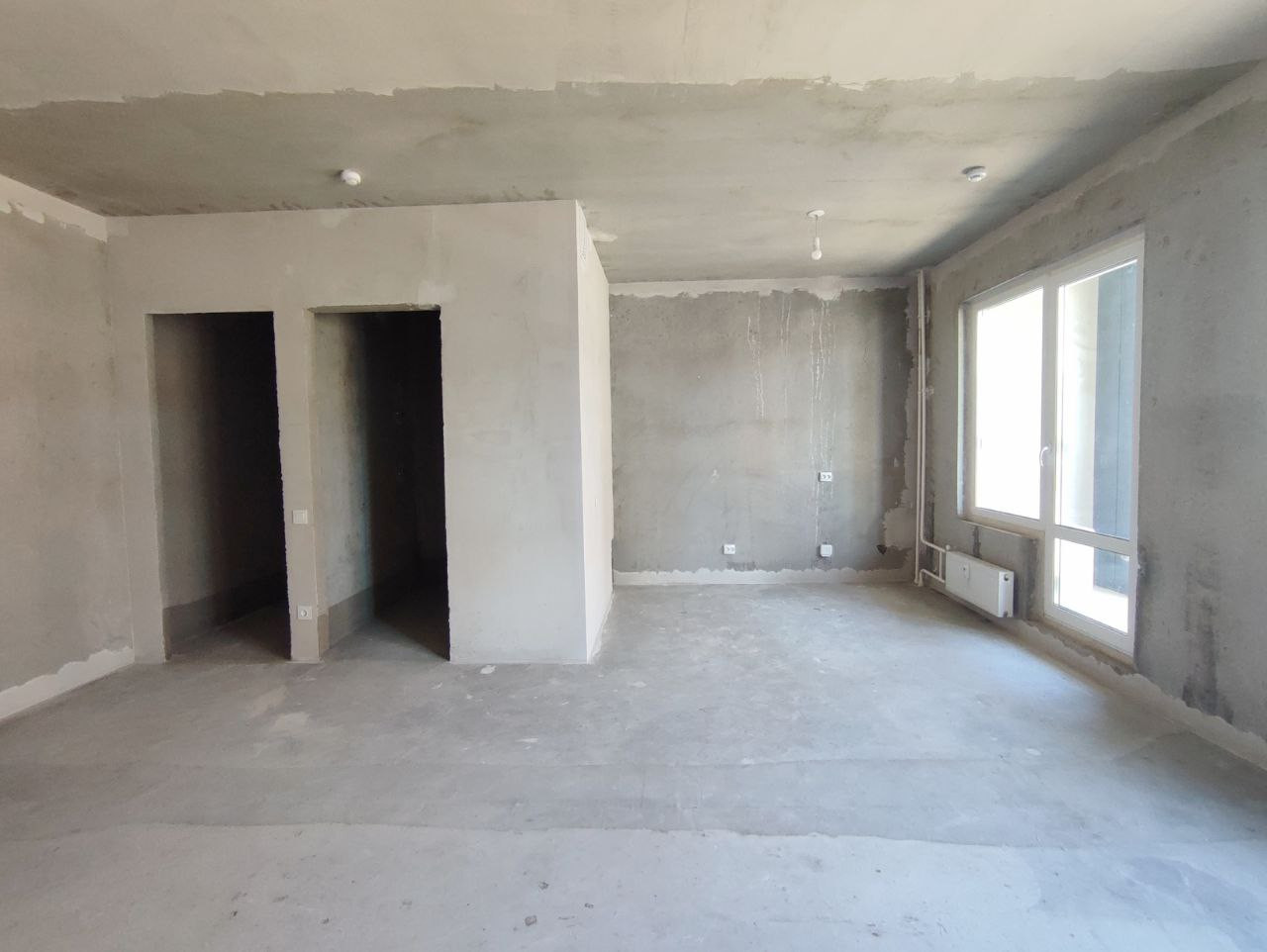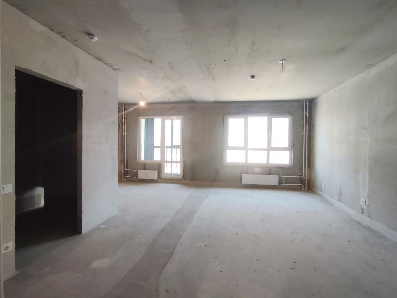 Отделка квартиры включает выравнивающую цементно-песчаную стяжку, электрическую разводку по квартире с установкой розеток и выключателей, пластиковое остекление, качественную облагороженную металлическую дверь, приборы учёта, радиаторы.