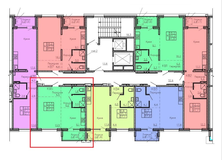 Общая площадь 37.8 м2