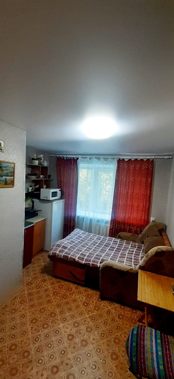 Комната находится на комфортном 3 этаже кирпичного дома. Жилая площадь самой студии 12,6 м.кв, однако при наличии мест общего пользования в вашем распоряжении дополнительно свыше 3-х м.кв. (например, разместить стиральную машинку, холодильник...)!