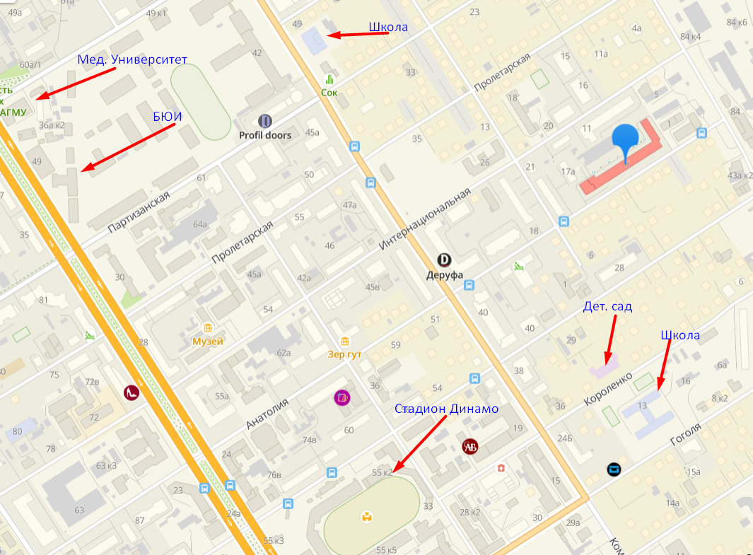 Дом расположен в очень тихом и спокойном месте! При этом в непосредственной близости от центра. Инфраструктура отличная: детский сад, школа, стадион Динамо, университеты, колледжи, магазины, банки, аптеки все в шаговой доступности!!! Остановки городского транспорта рядом с домом.
