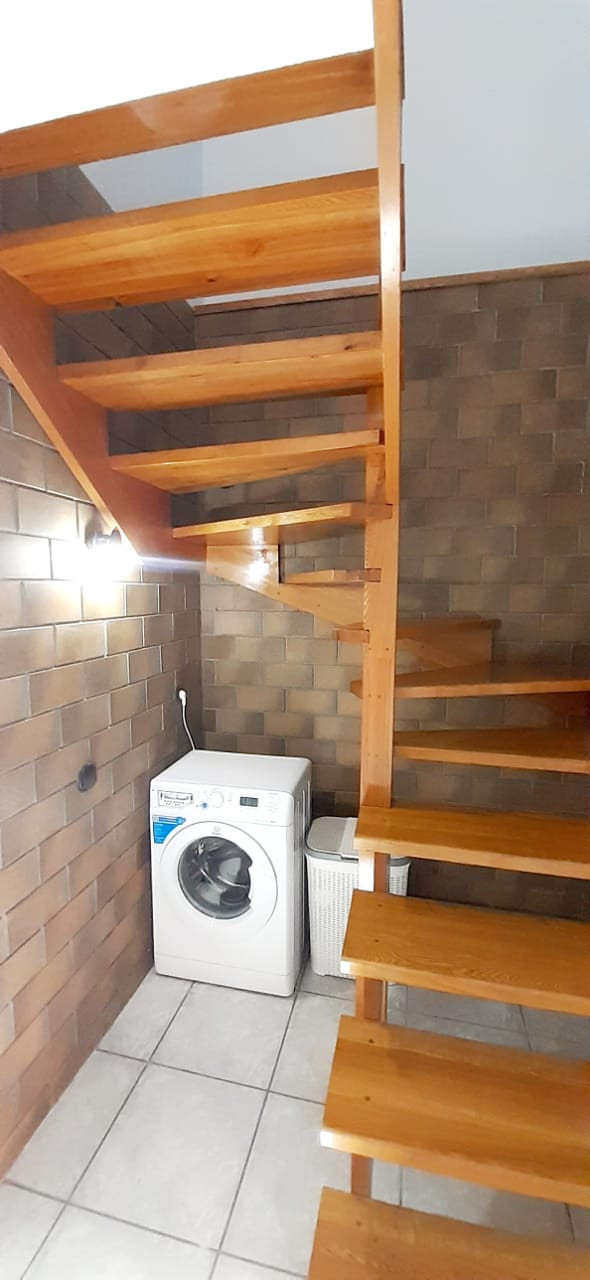 1 этаж - большая прихожая со встроенным плательным шкафом и гардеробной, гостиная с балконом, кухня-столовая, очень просторный и необычный по планировке совмещенный сан. узел с лоджией, две спальни.