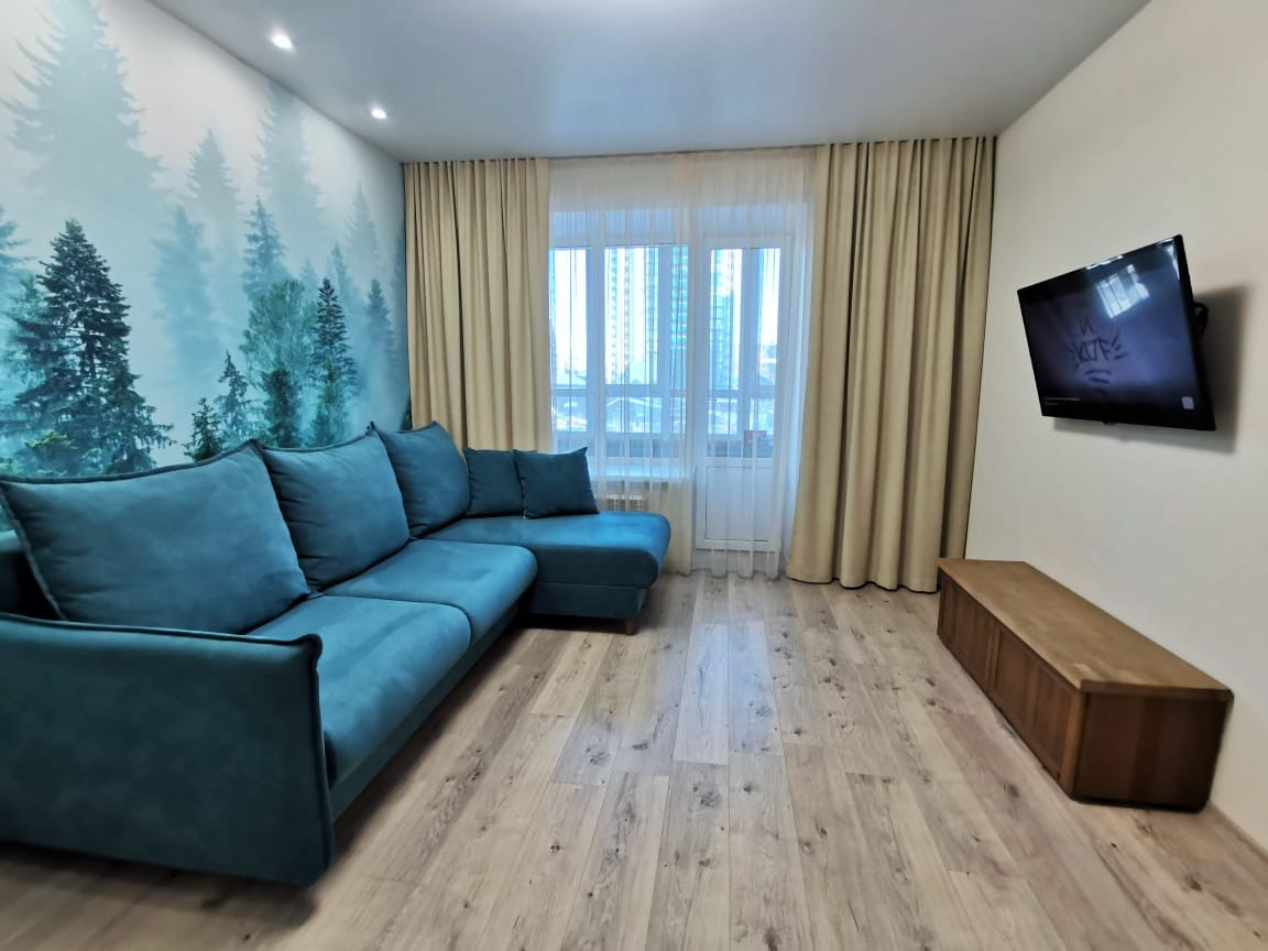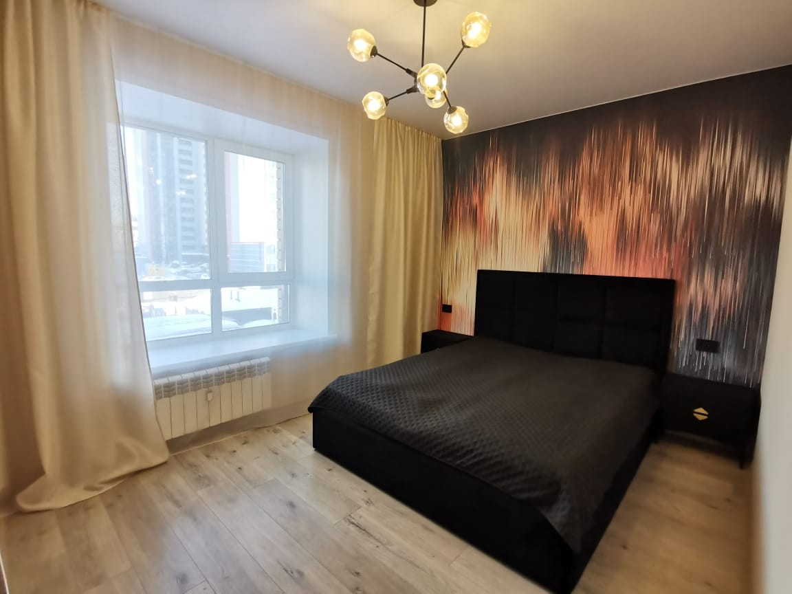 Просторные и светлые комнаты с панорамным остеклением, очеь хорошая планировка, большая гардеробная комната. В подарок новым собственникам остаётся новый современный кухонный гарнитур с бытовой техникой( варочная панель, духовой шкаф, встроенная микровоновая печь, в с/узле водонагреватель).В квартире сделан ремонт из качественных материалов, установлены качественные межкомнатные двери, ламинат, в ванной комнате керамогранит и отличного качества сан.техника.