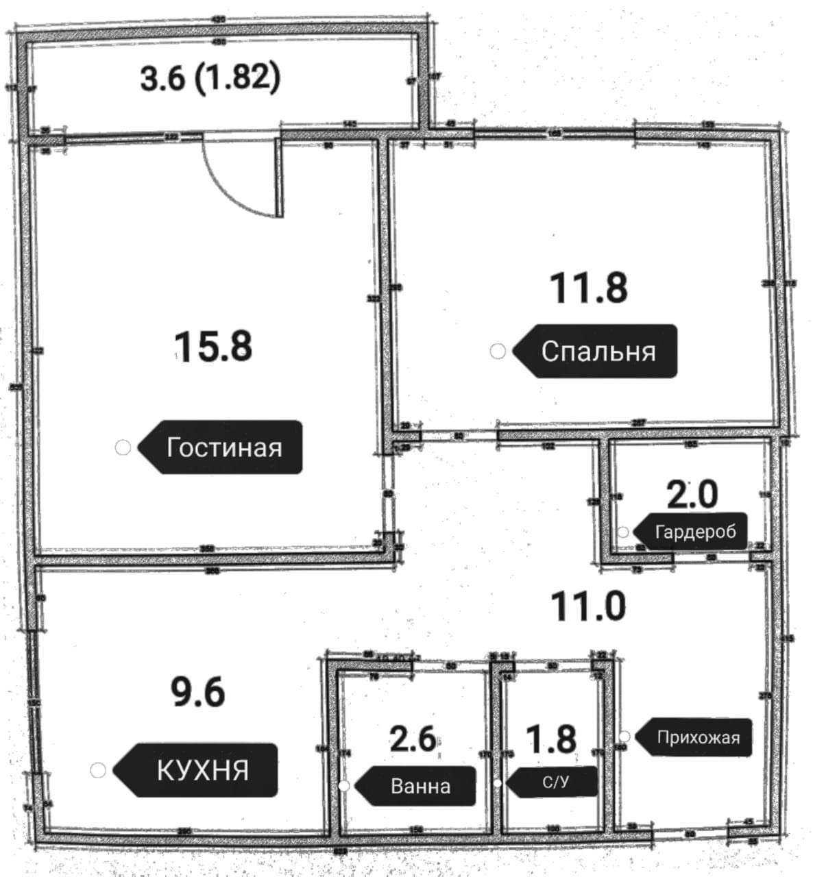 Общая площадь 55 м2