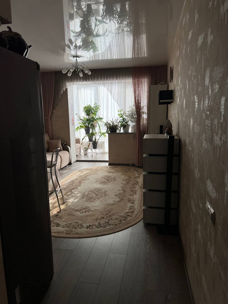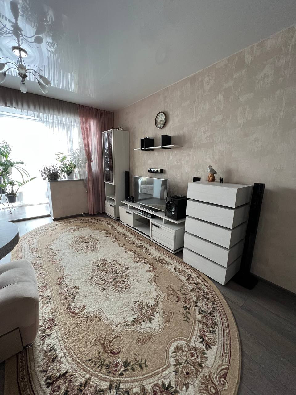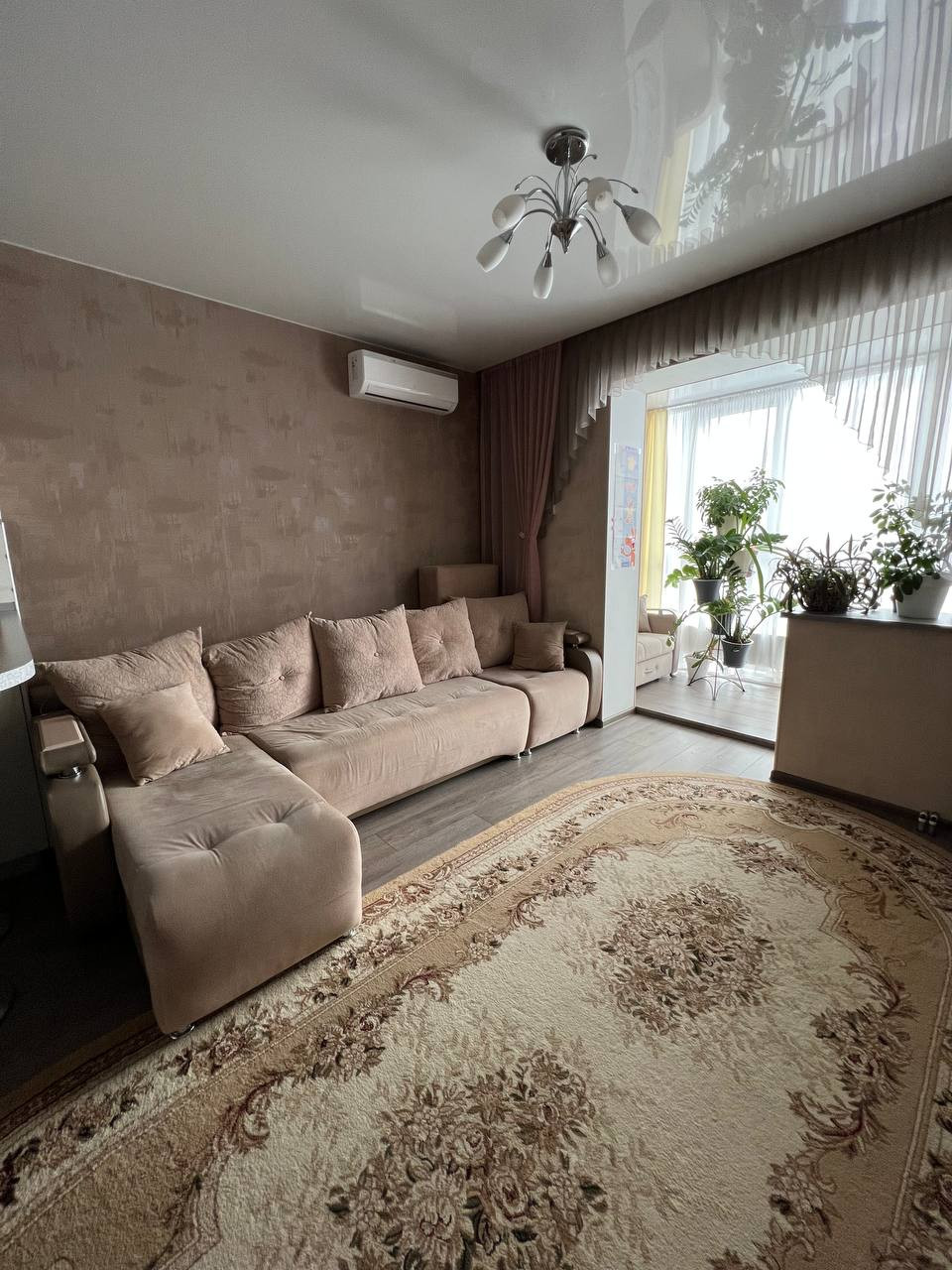 В квартире выполнен качественный ремонт. На полу по всей квартире лежит ламинат, в прихожей керамогранит, в ванной кафель. Везде натяжные потолки. Межкомнатные двери фирмы Волховец.