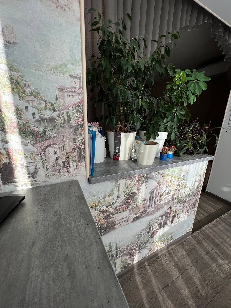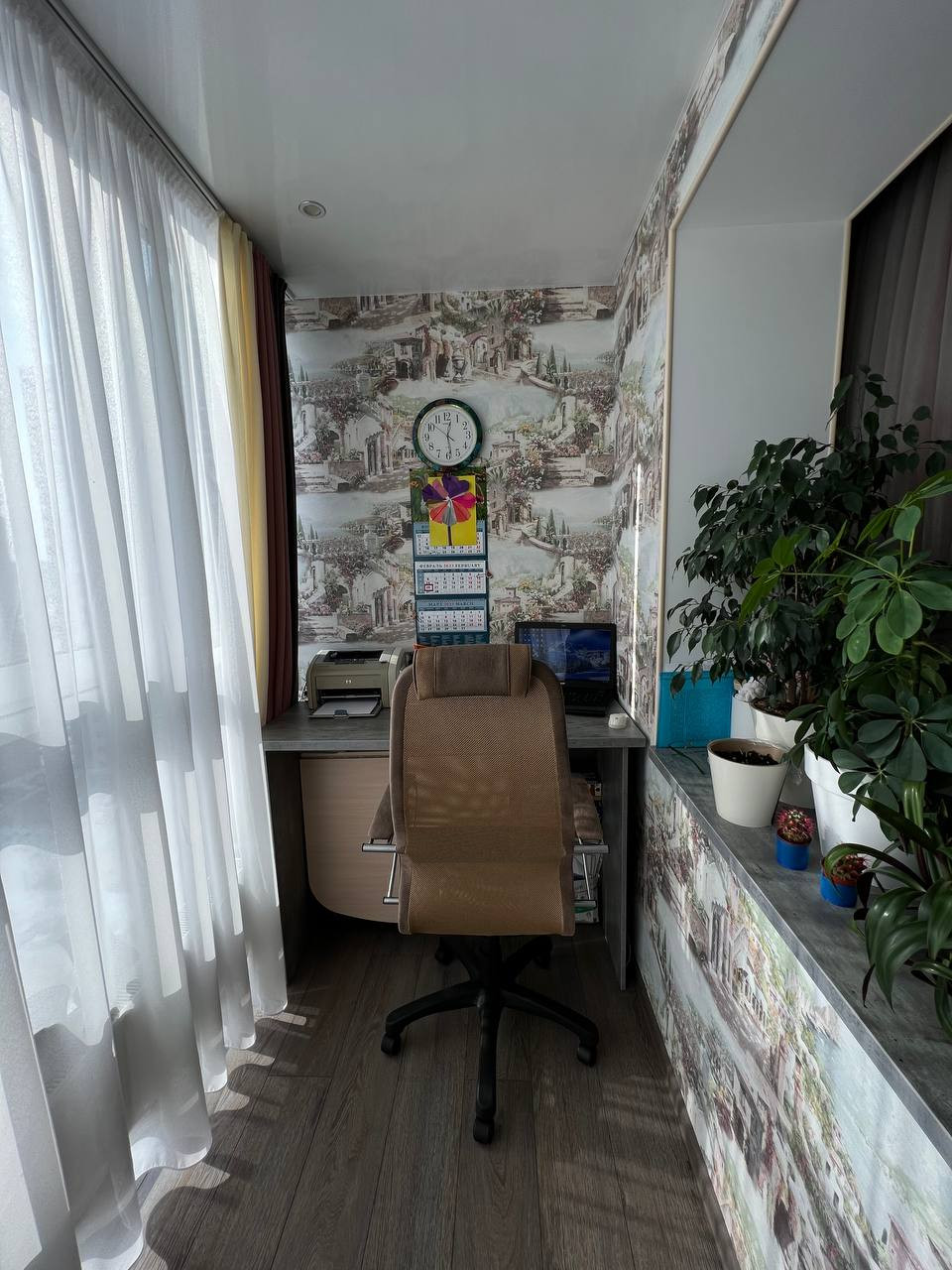 Так же остается стол на балконе, который выполнен в одном стил с подоконником. Изготавливались на заказ.