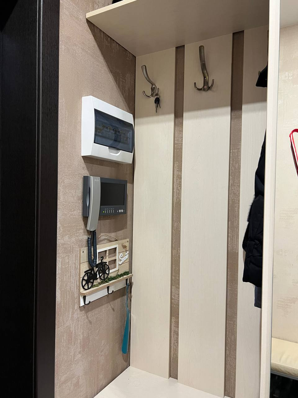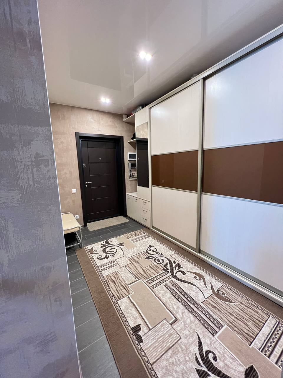 Встроенная мебель остается: в прихожей установлена большая гардиробная, в спальной