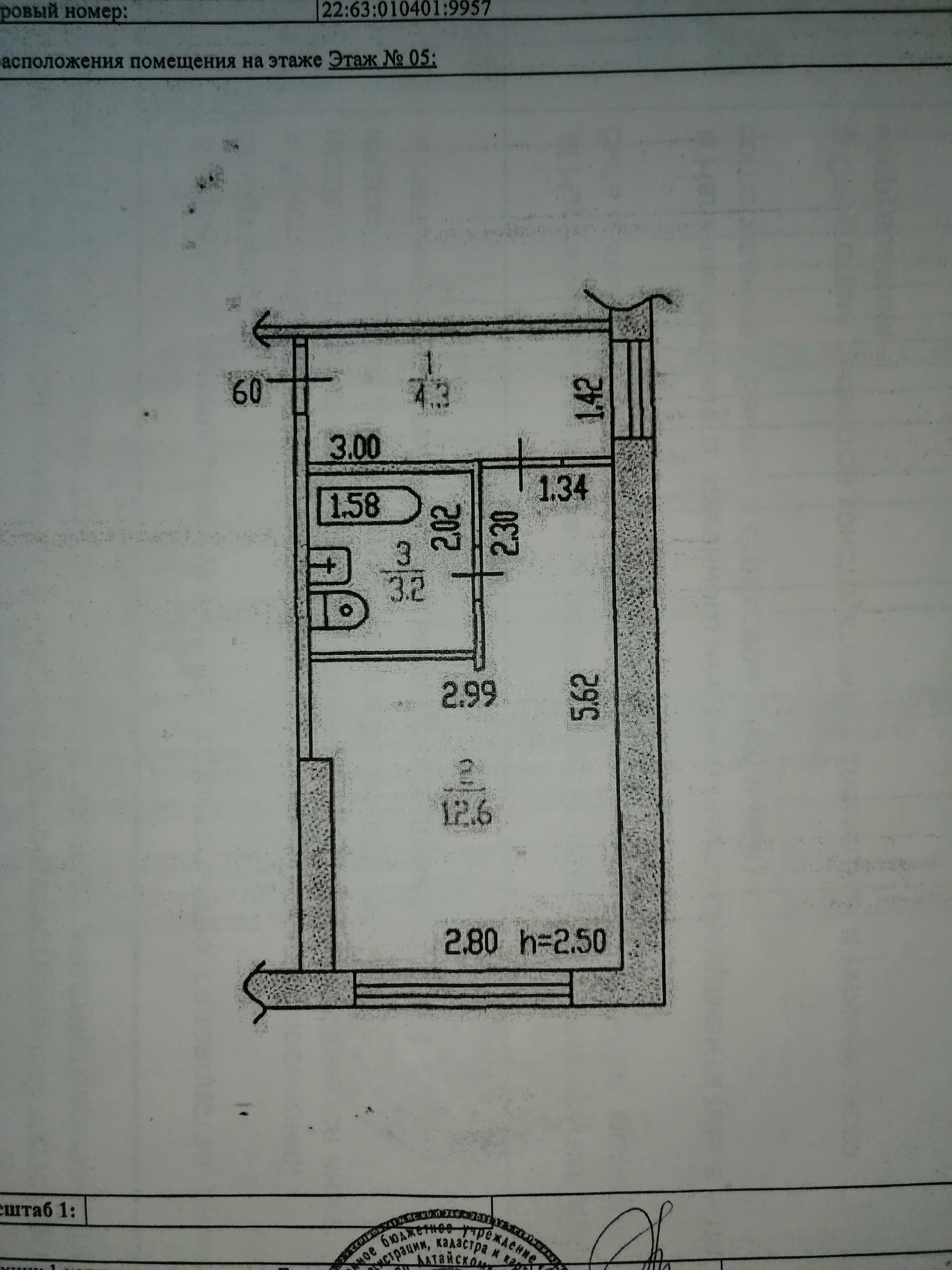 1-комнатная квартира, 20.1 м2, этаж 5 / 9, на продажу в Барнауле, улица Монтажников, 11/2