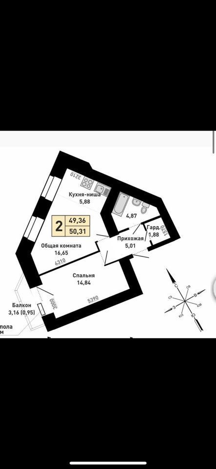 Общая площадь 50.3 м2