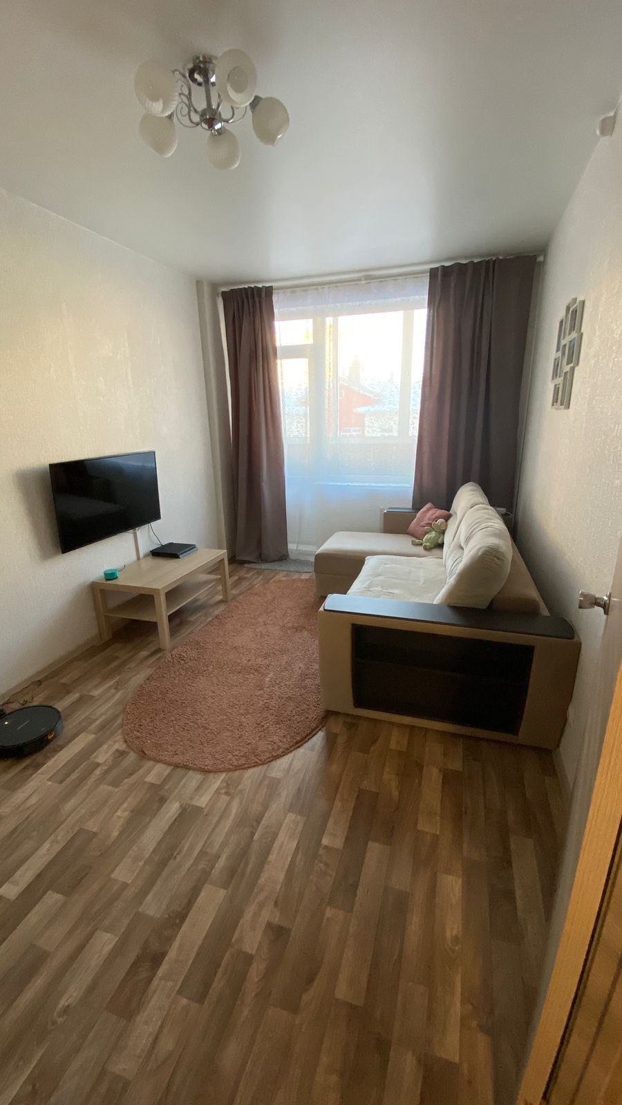Полноценная 1 комн.квартира ,уютная просторная с гардеробом,утеплённым балконом,в комнате и коридоре линолеум,на кухне плитка пвх,новая входная дверь.Остаётся кухонный гарнитур,без бытовой техники.Есть обременение ВТБ.Квартира на задатке.